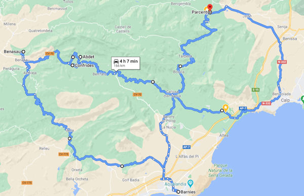 After Guadalest I dropped down to Altea Vieja and on to the N332 for a brief ride along the coast to Calpe before climbing back up the fast-flowing bends up to Benissa. Turning left just before the town I headed back into the Jalon Valley and on to Parcent and home.